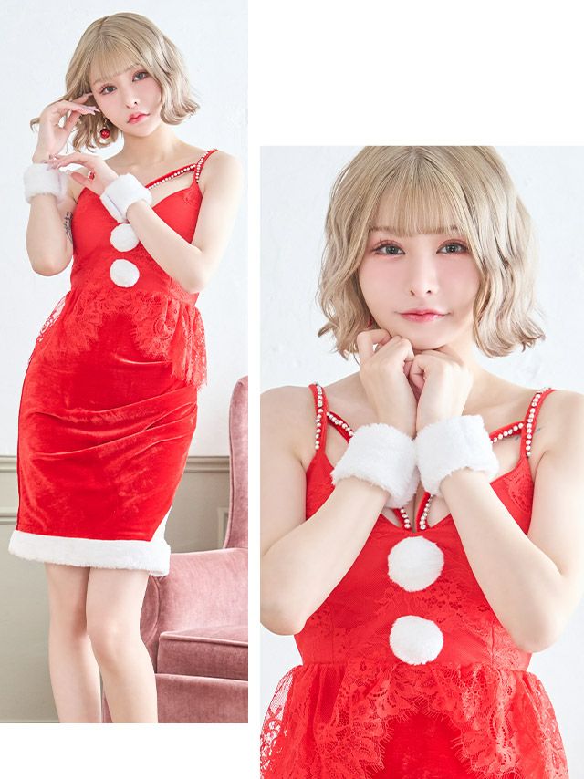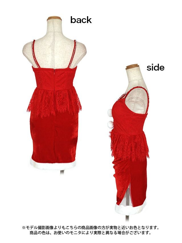 4. サンタコス 2点set レースペプラムスリット入りデザインセクシー サンタ コスプレ [ワンピース+リストバンド]