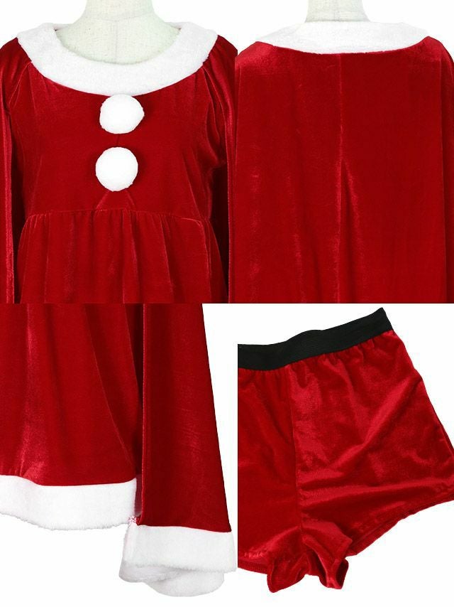 サンタコス 3点set エレガントケープデザイン サンタ コスプレ [トップス+ショートパンツ+サンタ帽子]