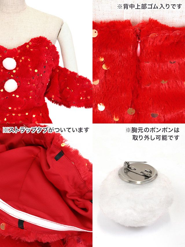 サンタコス 3点set ベアゴールドスパンコールもこもこフレア王道サンタコスプレのディテイール