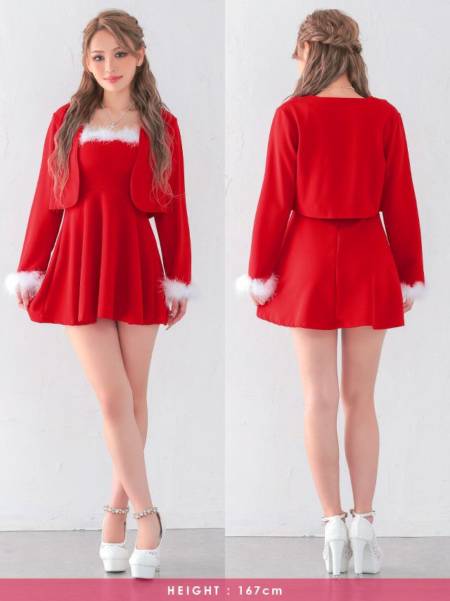 サンタコス 2点set キャミソール ふわふわ フレア サンタドレスのフロントバック