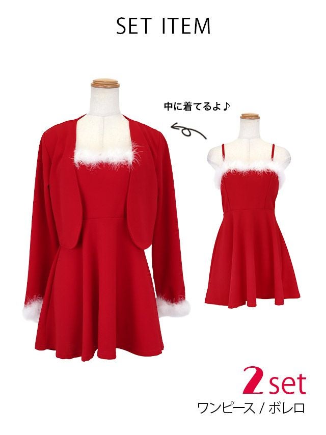 サンタコス 2点set ふわふわ フレア キャミソール サンタドレス [ワンピース+ボレロ](Mサイズ)