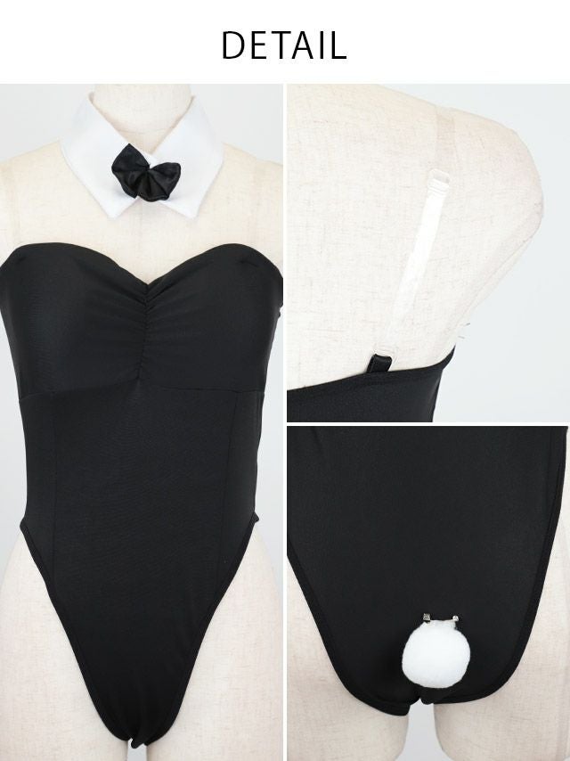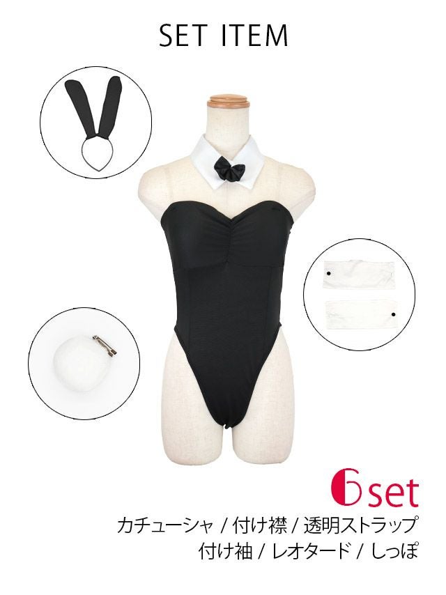 4. [セール]コスプレ セクシーハイレグバストギャザーレオタードバニー [6点セット] (レオタード/カチューシャ/しっぽ/付け襟/付け袖/透明ストラップ)