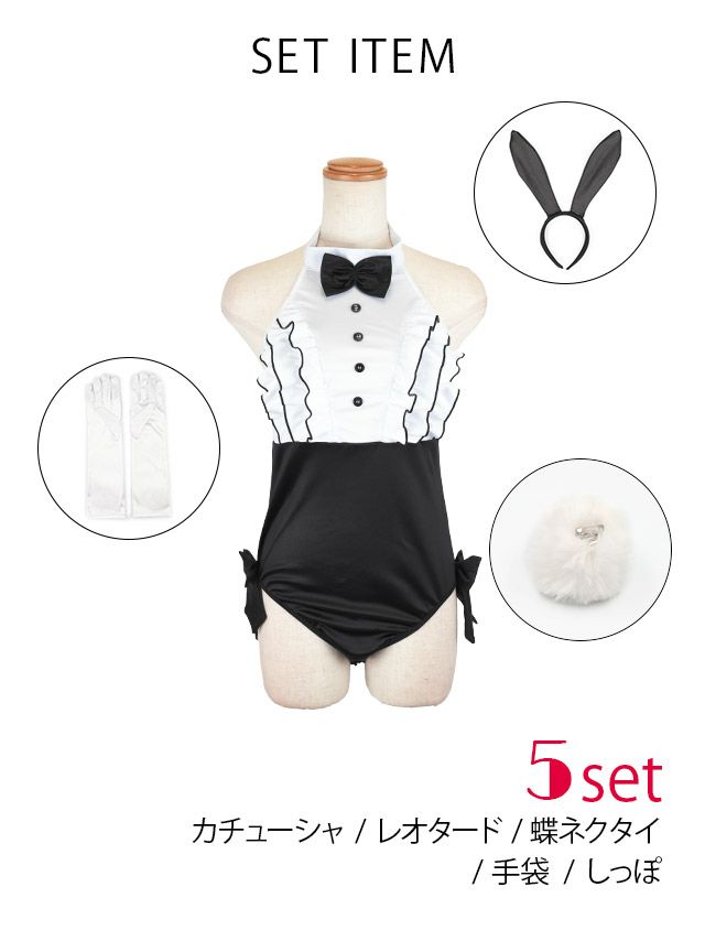 4. [セール]コスプレ セクシーハイレグホルターネックレオタードバニーアニマル [5点セット] (レオタード/カチューシャ/しっぽ/蝶ネクタイ/手袋)