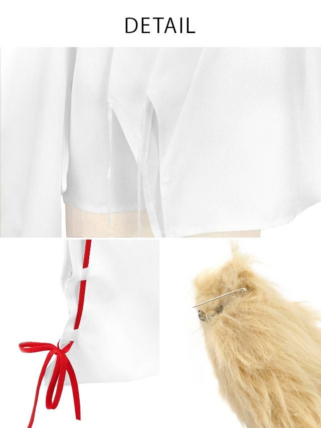 4. コスプレ 和装 フレアスカート アニマル 巫女 狐 リボン 体型カバー [4点セット] (トップス/スカート/カチューシャ/しっぽブローチ)