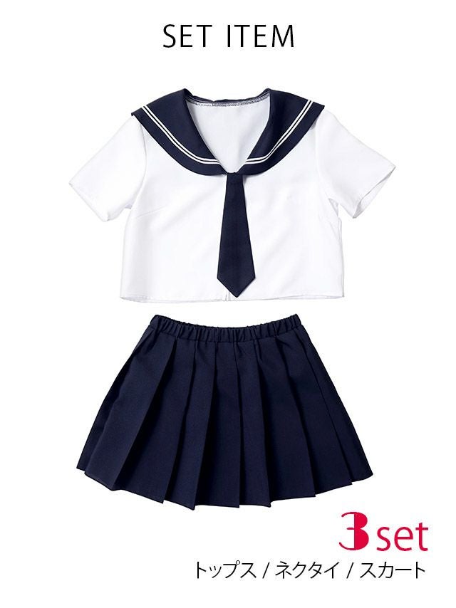 5. コスプレ ネクタイシンプルプチプラミニガーリーセーラー制服 [3点セット] (トップス/スカート/リボン)