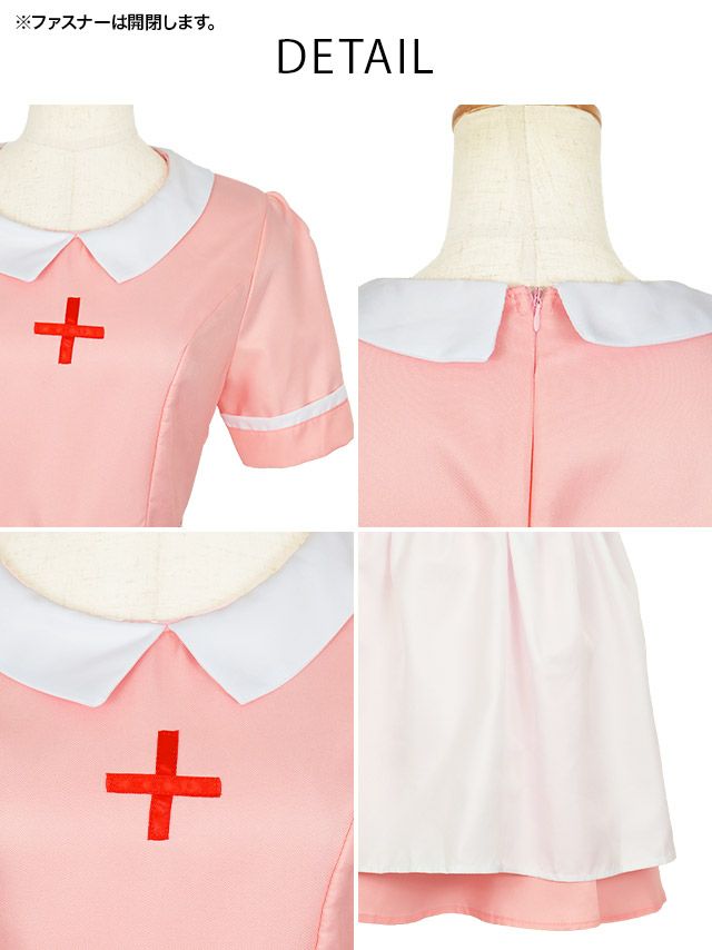 4. コスプレ 聴診器付きレトロガーリーフレアプチプラミニナース [6点セット] (ナース服/エプロン/帽子/靴下/聴診器/腕章)