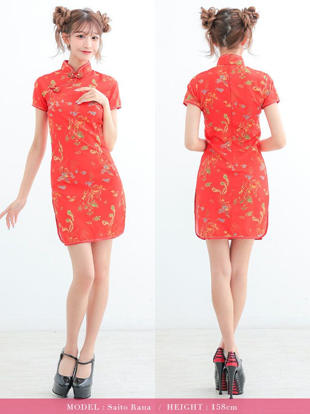 5. [セール][再入荷]コスプレ タイトミニ丈セクシーサイドスリットプチプラペアチャイナドレス [1点セット] (チャイナ服)(S~XXXXXL)