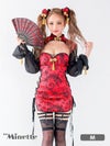 コスプレ バストカット シアスリーブ チャイナドレス ガーター ハロウィンコスプレ5点セット [ジャケット+ワンピース+お団子カバー+ガーター+透明ストラップ]の商品画像