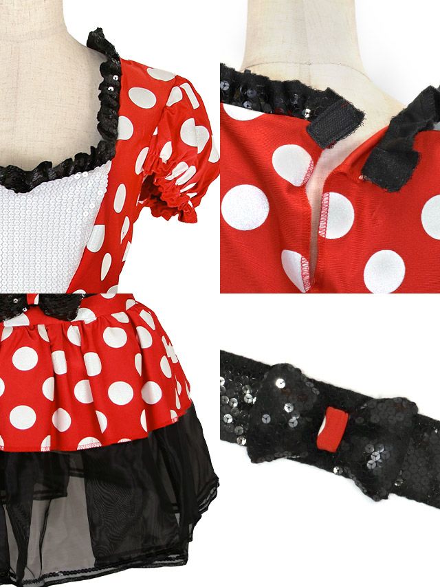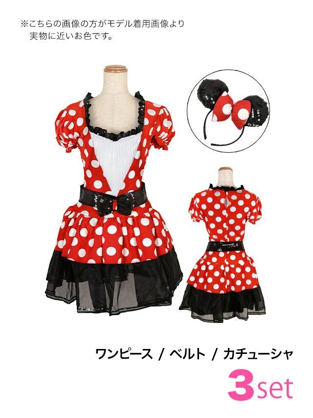 4. コスプレ ディズニー ハートカットフリル体型カバーボリュームフレアスカートミニーマウスキャラクター [3点セット] (ワンピース/ベルト/カチューシャ)