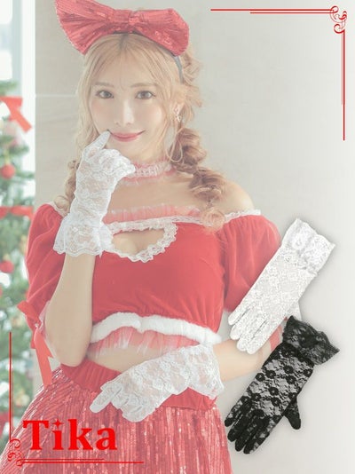 4. コスプレ 小物 花柄レースフリルショート丈グローブ