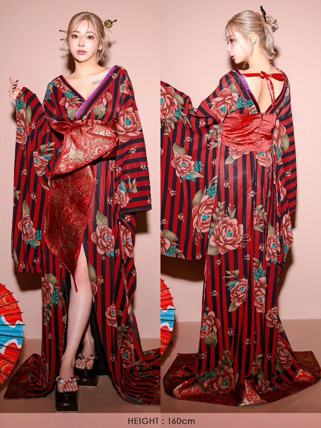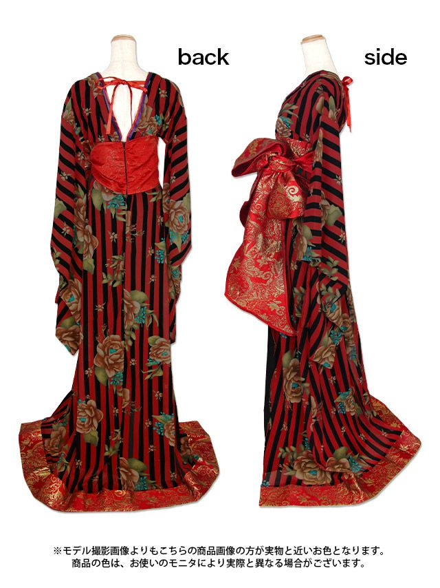 4. コスプレ セクシーストライプフラワー花魁コスプレ1点セット [着物ドレス]