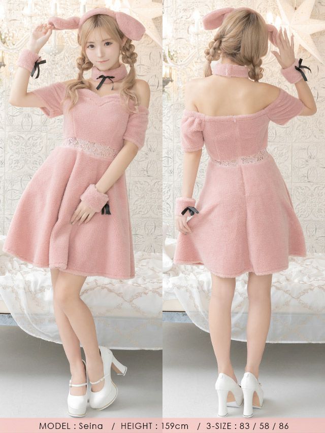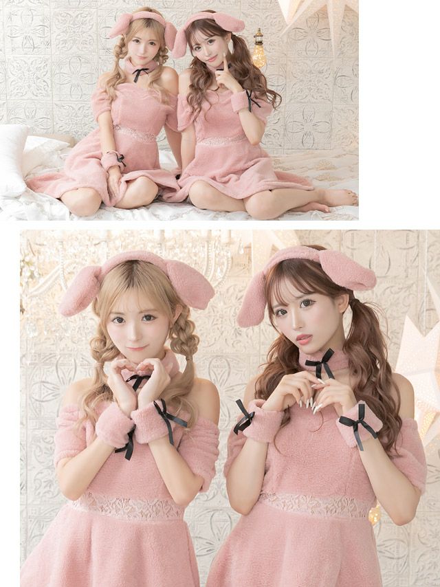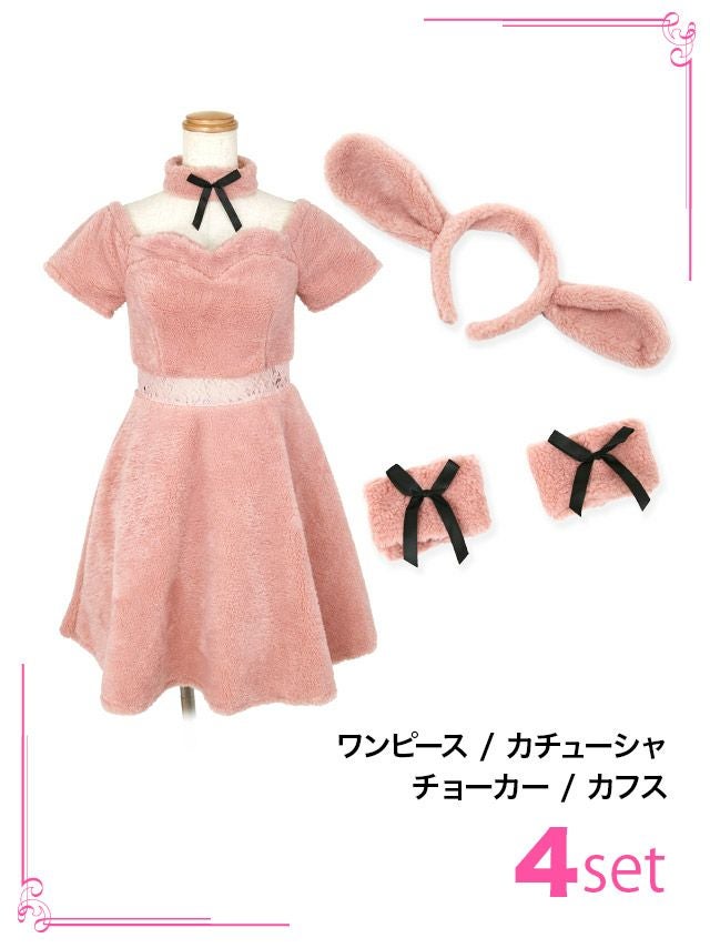 5. [セール]コスプレ ふわもこウエストレース体型カバーフレアスカートガーリー犬アニマル [4点セット] (ワンピース/カチューシャ/チョーカー/カフス)