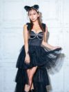 コスプレ へそ出しビスチェゴージャスフィッシュテールチュールフレアスカートセットアップペアセクシー猫アニマルのフロントバック