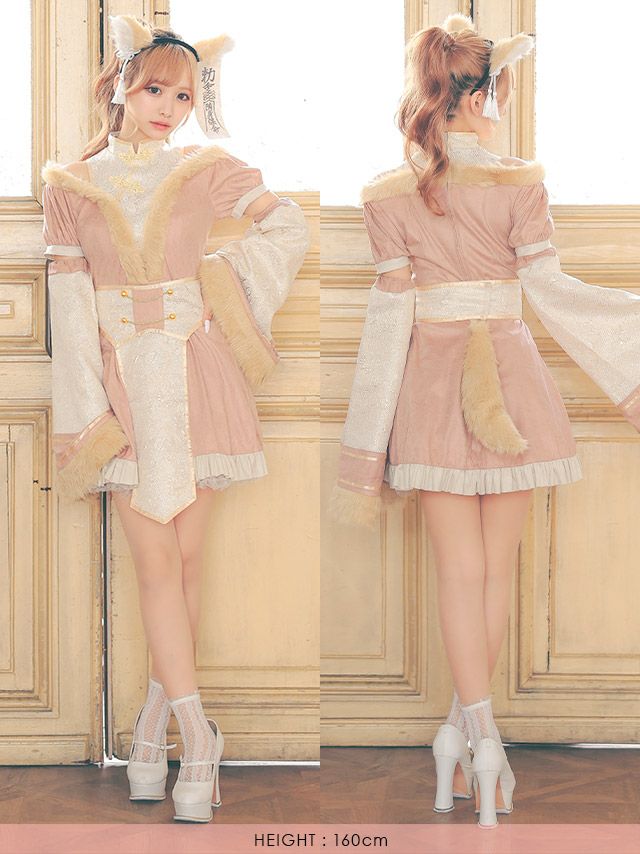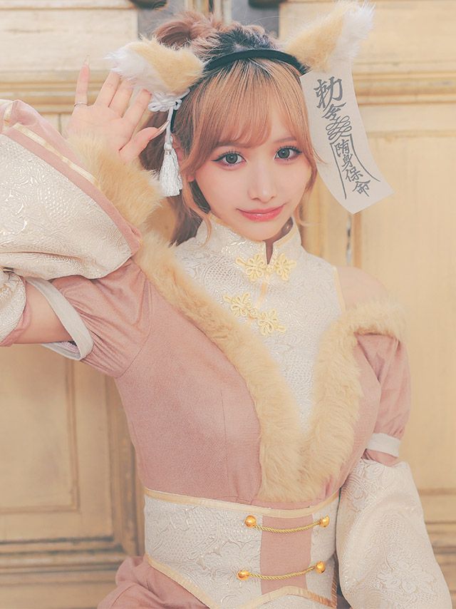 仮装 変装 コスチューム キツネ myMinette マイミネット コスプレ 袖あり フレアスカート 体型カバー 個性 キョンシー キャラクター ガーリー 狐 アニマル