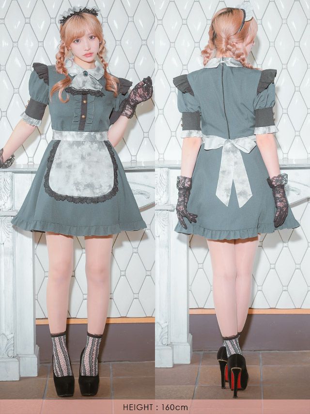 コスプレ クラシカル体型カバーフレアスカートホラー洋館メイドのフロントバック