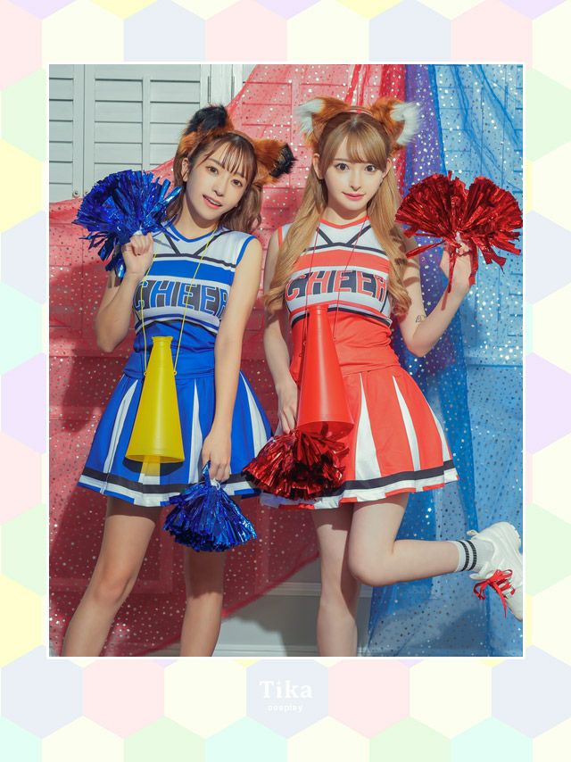 4. コスプレ セットアップフレアスカートペアプチプラガーリーチアガール [3点セット] (トップス/スカート/ポンポン)