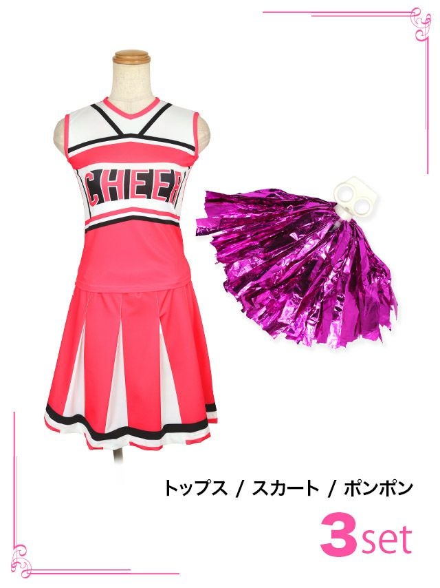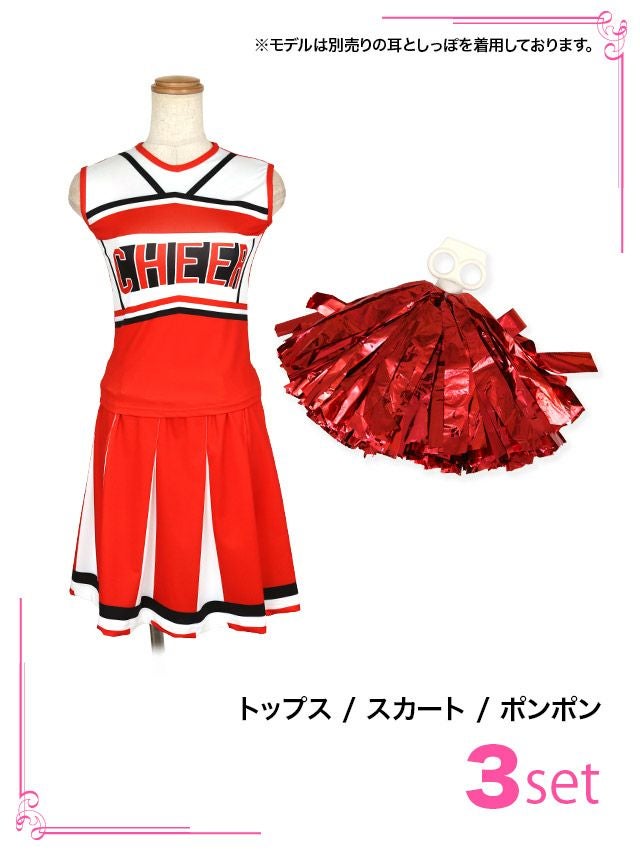 コスプレ セットアップフレアスカートペアプチプラガーリーチアガール [3点セット] (トップス/スカート/ポンポン)