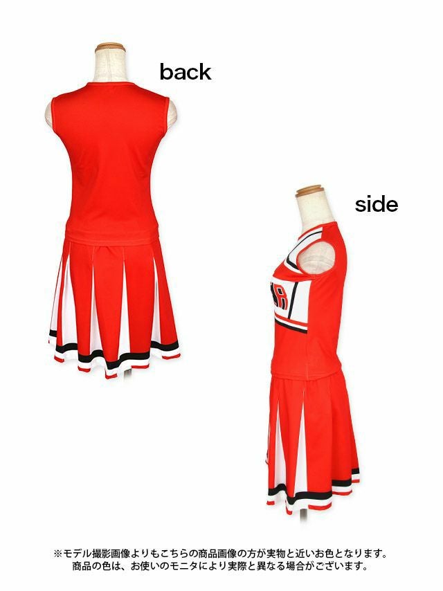 5. コスプレ セットアップフレアスカートペアプチプラガーリーチアガール [3点セット] (トップス/スカート/ポンポン)