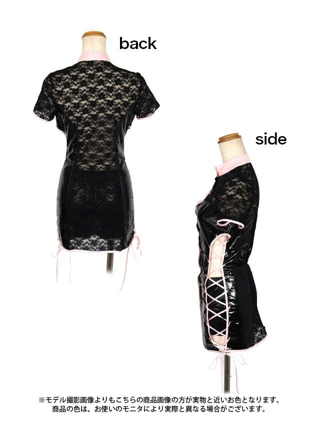 レザー×レースサイド編み上げハート型バストカットブラックセクシーナース