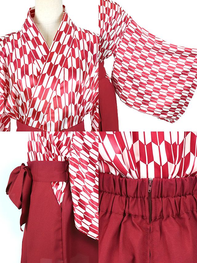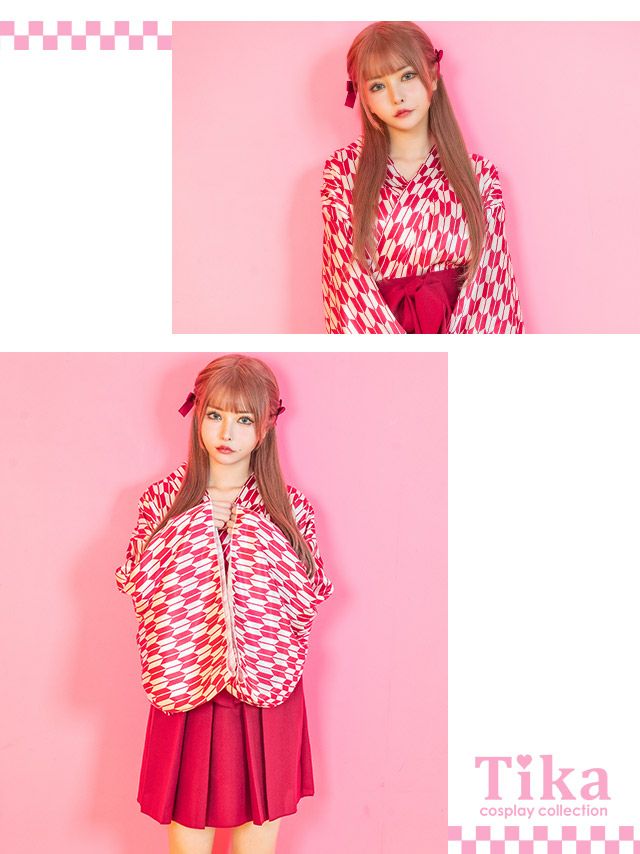 4. コスプレ 矢絣柄着物風ペアガーリーハイカラガール [2点セット] (上着/袴風スカート)