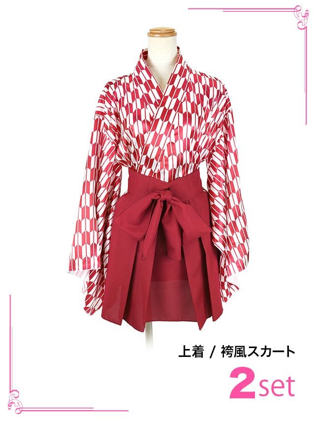 3. コスプレ 矢絣柄着物風ペアガーリーハイカラガール [2点セット] (上着/袴風スカート)
