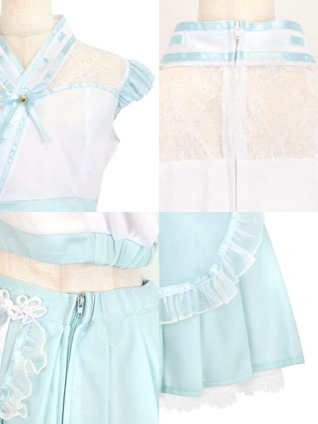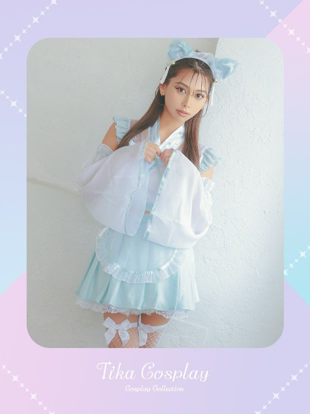 コスプレ プリーツフレアスカートメイド和装デザイン付け袖巫女狐ガールアニマルのフロントバック