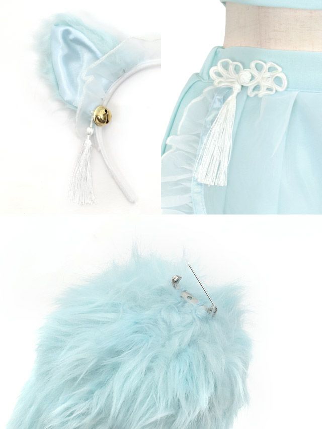 4. [セール]コスプレ プリーツフレアスカートメイド和装デザイン付け袖巫女狐ガールアニマル [5点セット] (トップス/スカート/付け袖/カチューシャ/しっぽ)