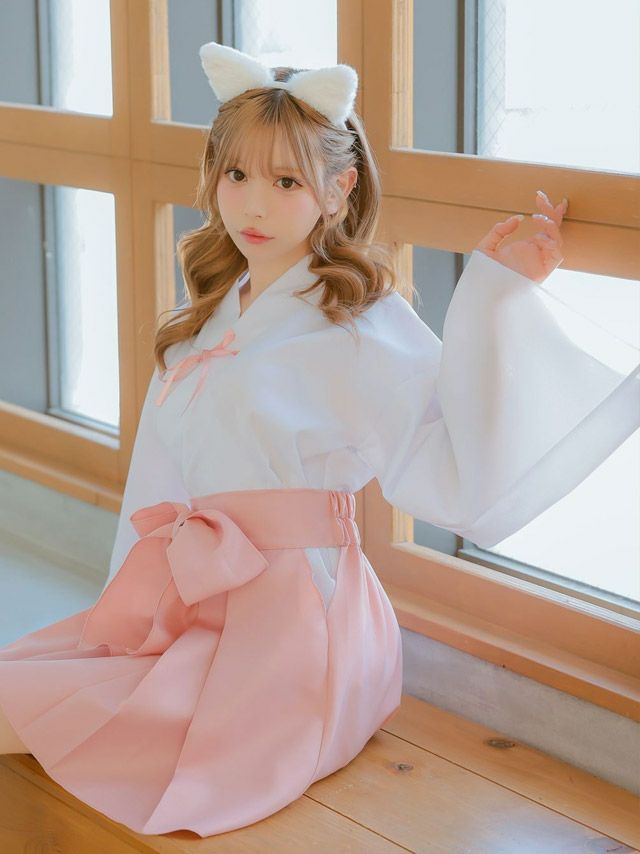 コスプレ 和装巫女×白猫体型カバーフレアスカートアニマルコスプレ内容