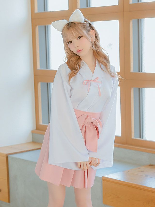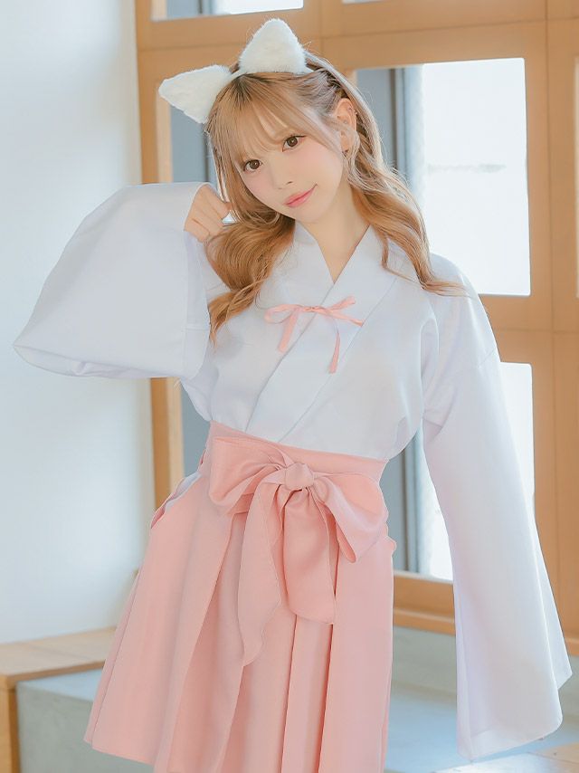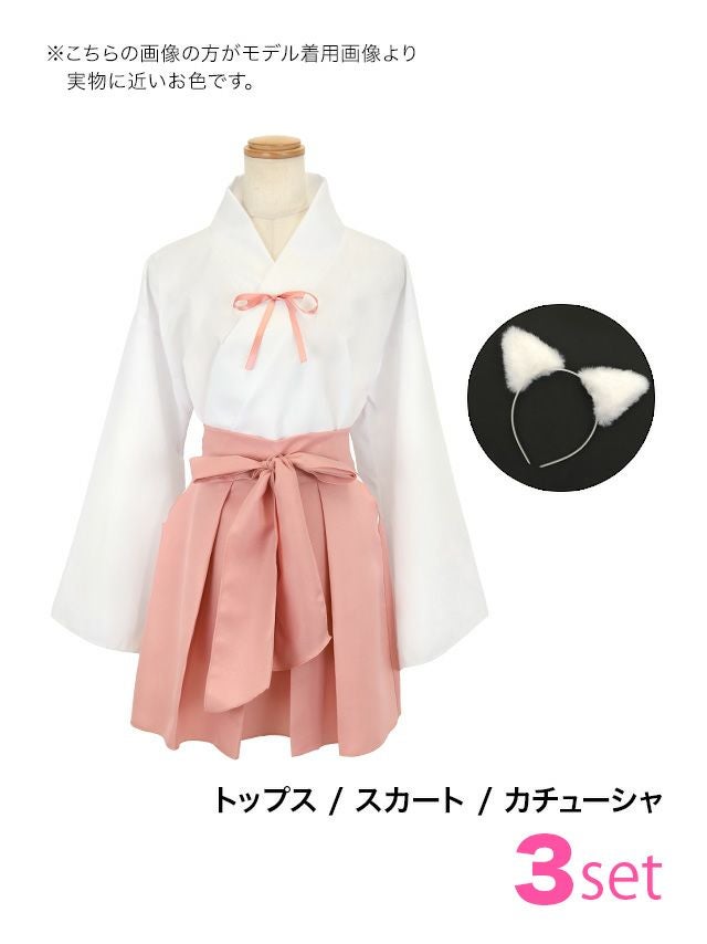 5. [コスプレ] 和装巫女×白猫体型カバーフレアスカートアニマルコスプレ [3点セット] (トップス/スカート/カチューシャ)