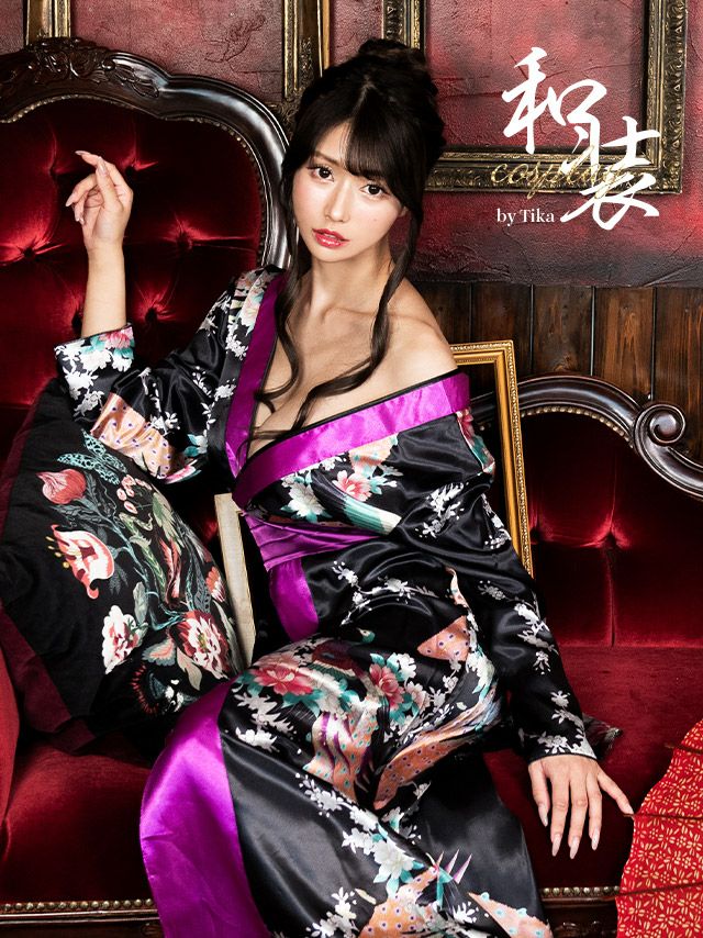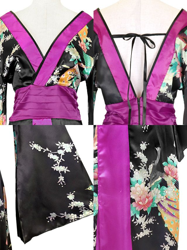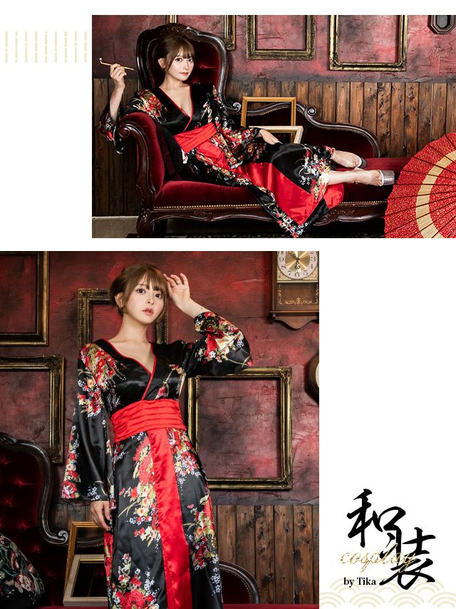 4. コスプレ セクシー花魁和装ペアサテンロング丈ドレス [2点セット] (ワンピース/透明ストラップ)