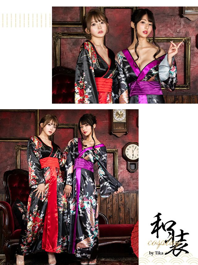 着物風のドレス仕様で簡単に花魁を楽しめるム♪