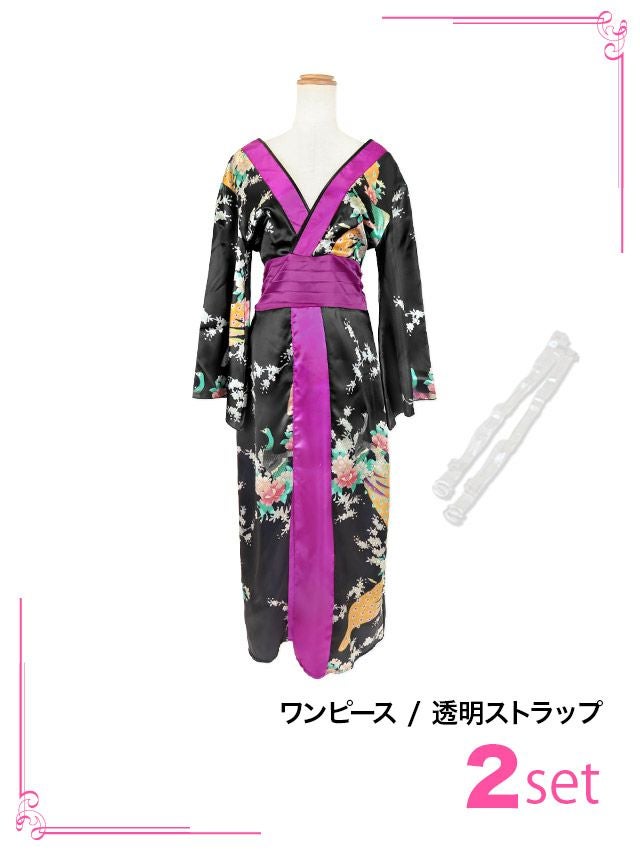 4. コスプレ 花魁和装フロントスリットセクシーロング丈ドレス [2点セット] (ワンピース/透明ストラップ)