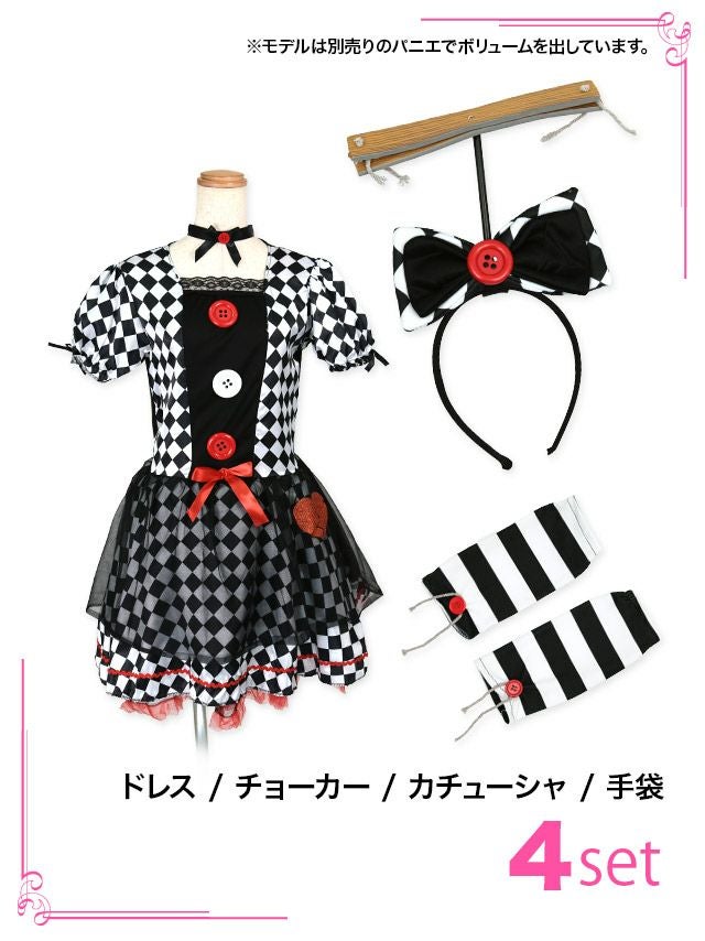コスプレ レディース 衣装 仮装 可愛い かわいい 通販 myMinette マイミネット マリオネット ドール ダイヤチェック インポート 体型カバー フレアスカート 個性 ペア ホラー