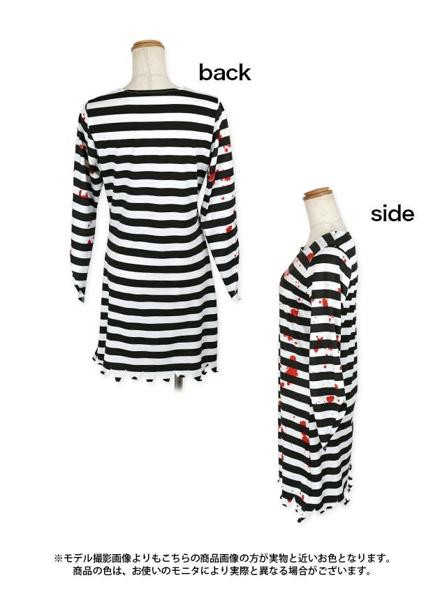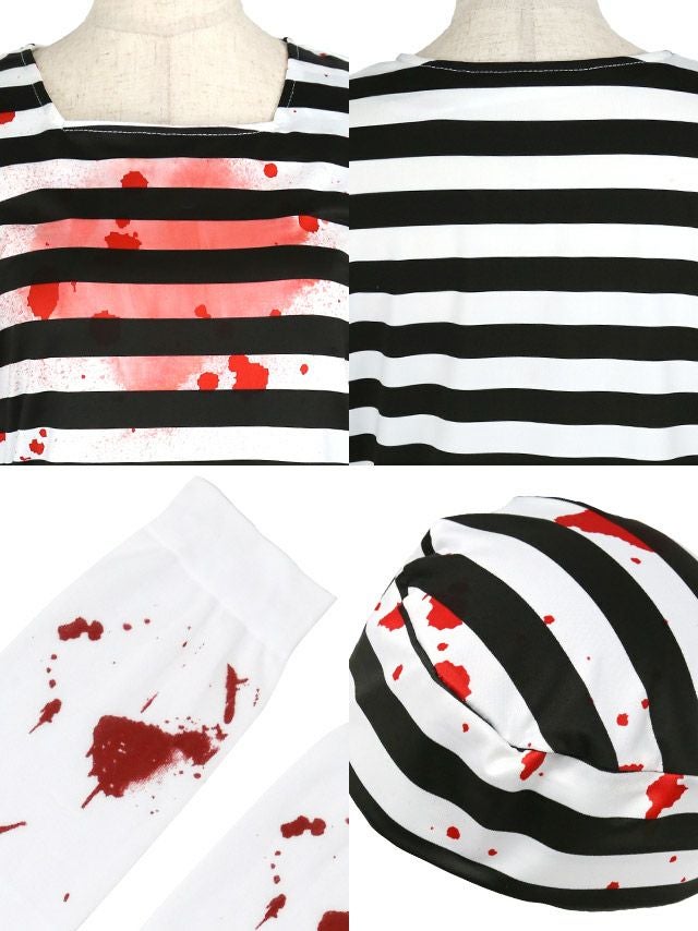 血まみれホラー囚人ゾンビ ハロウィンコスプレ3点セット [ワンピース+帽子+ニーハイソックス]