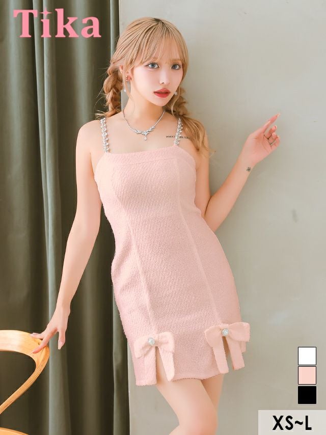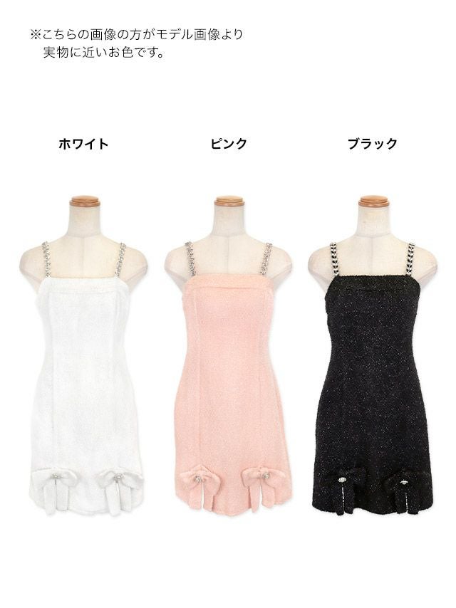 3. [アウトレット]チェーン キャミソール ツイード ラメリボン ガーリー フレアミニドレス (Sサイズ~Lサイズ) (りせり/キャバドレス着用)