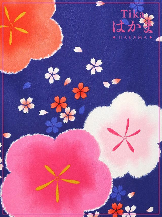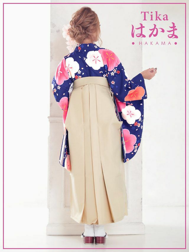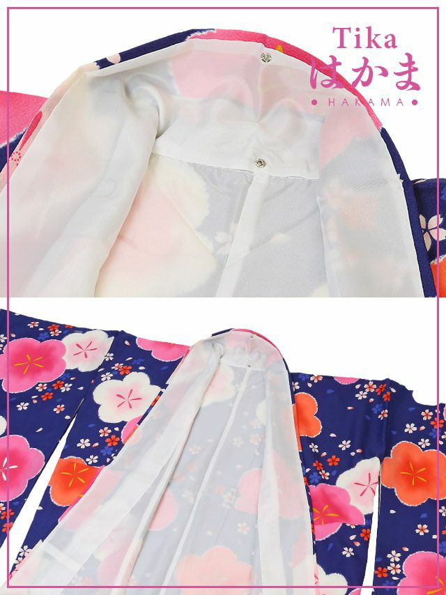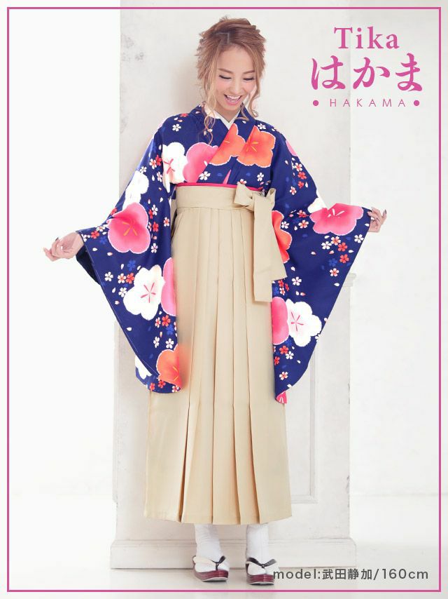 武田静加 はかま着用 レトロ梅模様 袴3点セット (二尺袖着物+袴下帯+袴) (紺地/白)