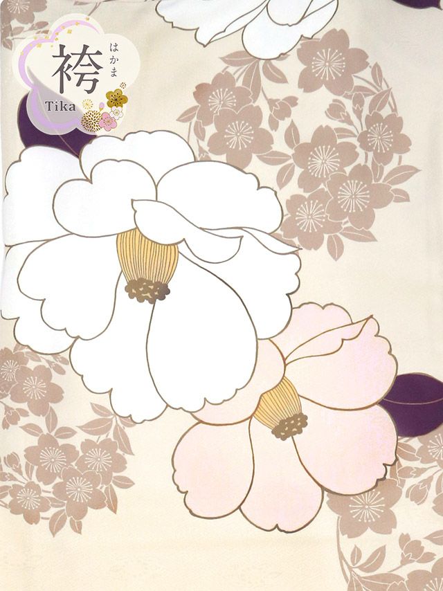 白とピンクの椿が印象的なインパクトのある袴
