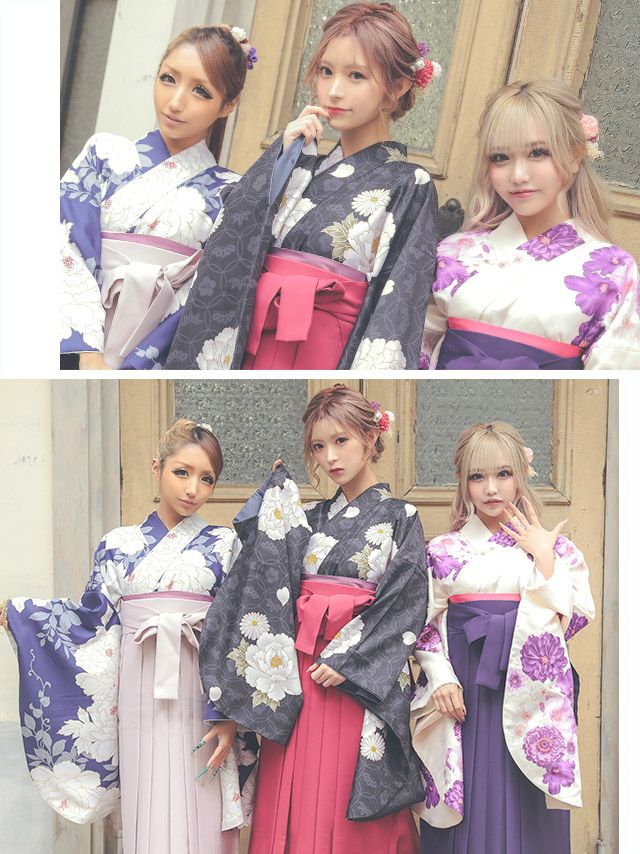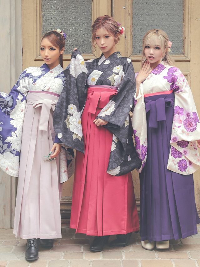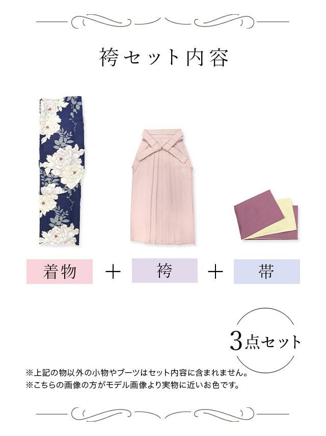 【 二尺袖着物+袴+袴下帯の袴3点セット 】