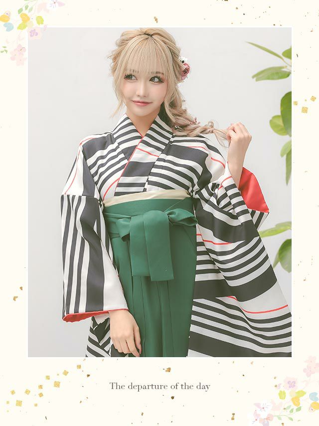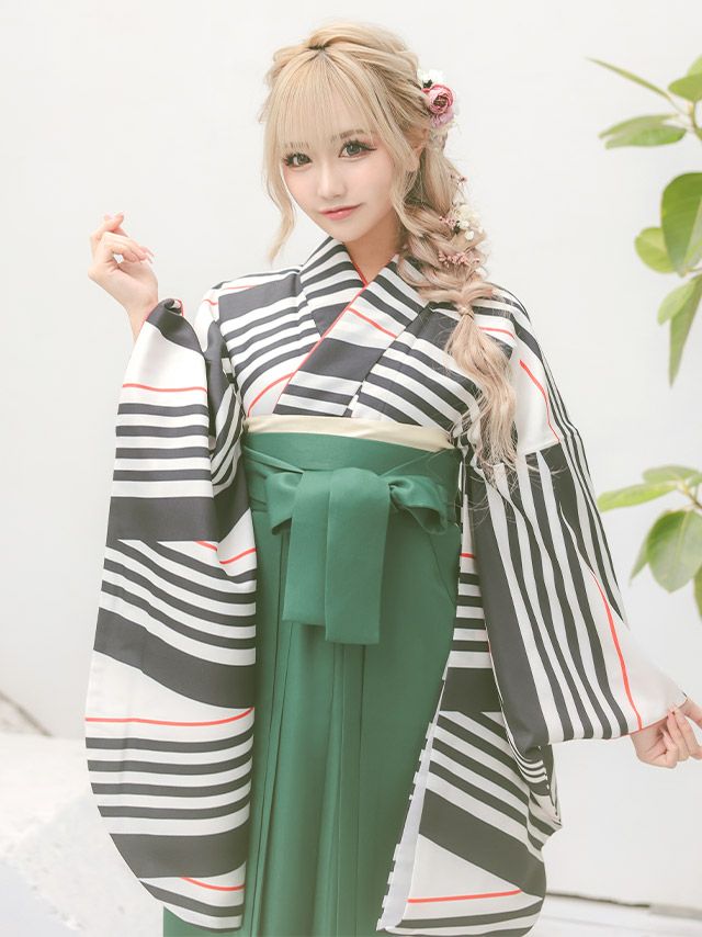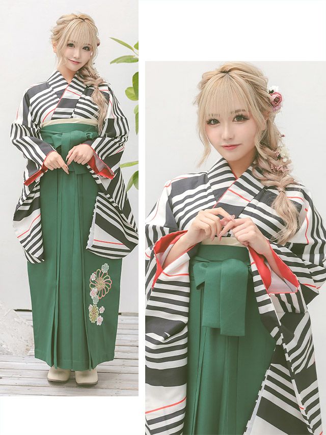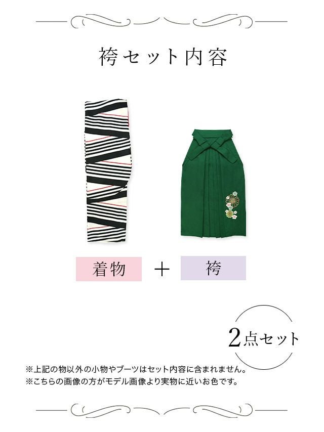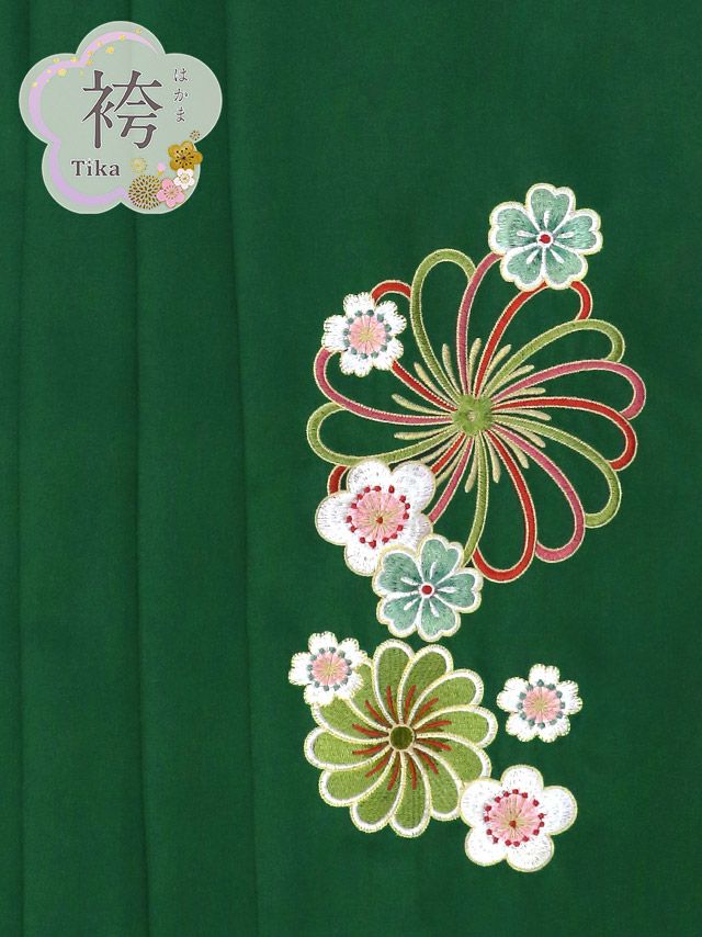 ダークグリーンな袴にはお花の刺繍が施されていて