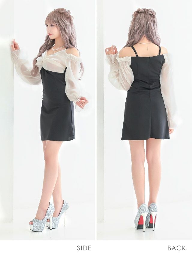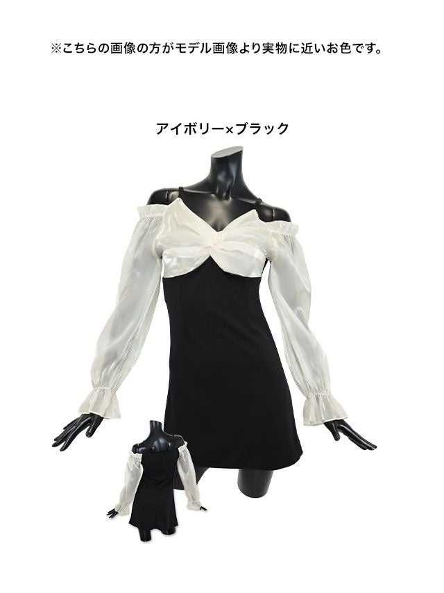 3. [SALE] ミニドレス プチプラ 新人 タイト 長袖 オフショル シアー 低身長 胸元隠し アイボリー 黒 リボン風 キャバドレス (ひなたまる着用/S~Lサイズ対応) | myMinette/マイミネット