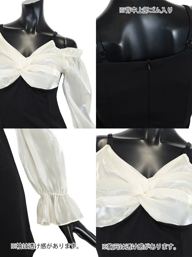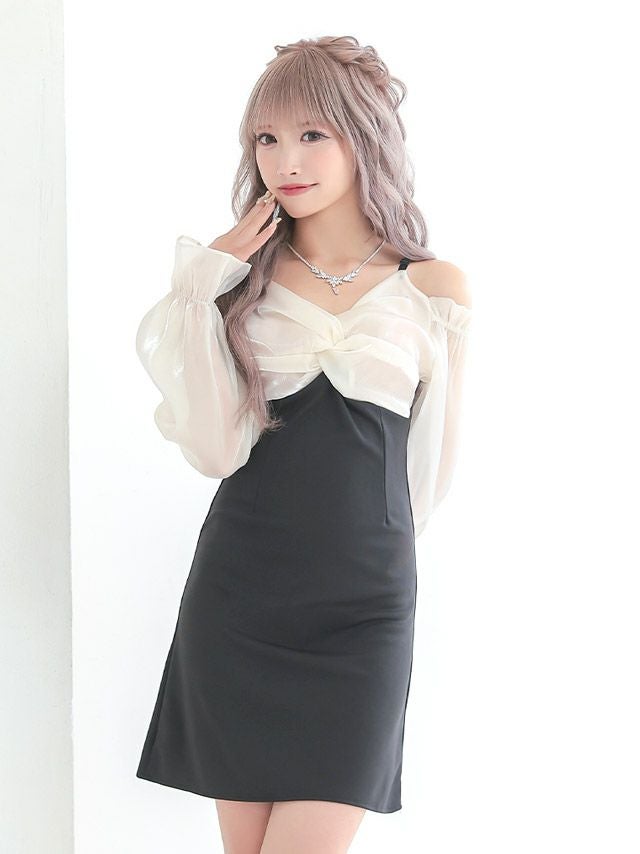 4. [SALE] ミニドレス プチプラ 新人 タイト 長袖 オフショル シアー 低身長 胸元隠し アイボリー 黒 リボン風 キャバドレス (ひなたまる着用/S~Lサイズ対応) | myMinette/マイミネット