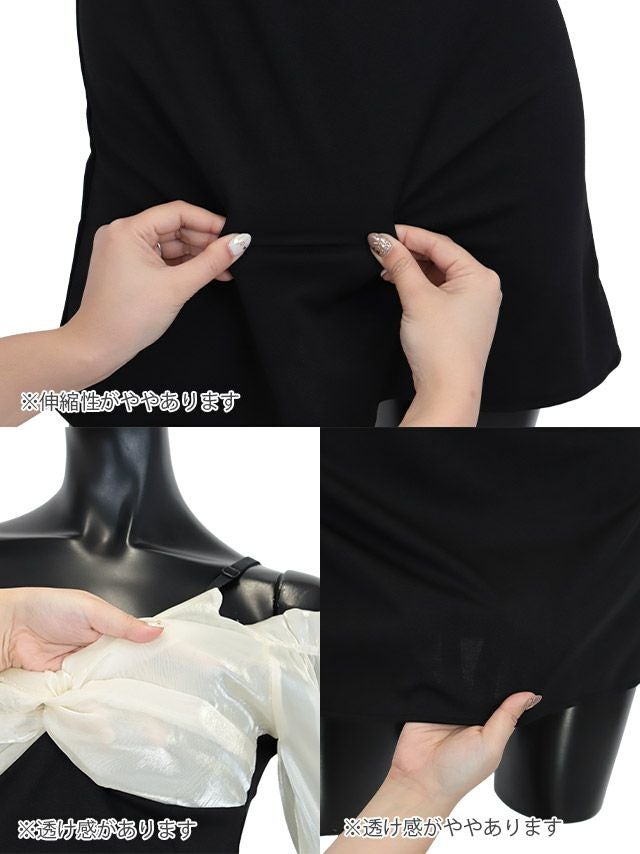 5. [SALE] ミニドレス プチプラ 新人 タイト 長袖 オフショル シアー 低身長 胸元隠し アイボリー 黒 リボン風 キャバドレス (ひなたまる着用/S~Lサイズ対応) | myMinette/マイミネット