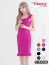 [SALE]ノースリーブフリルスクエアネックタイトドット柄ガーリープチプラ膝丈ドレス (Sサイズ~XXXXLサイズ) (向葵まる/キャバドレス着用)[myMinette/マイミネット]