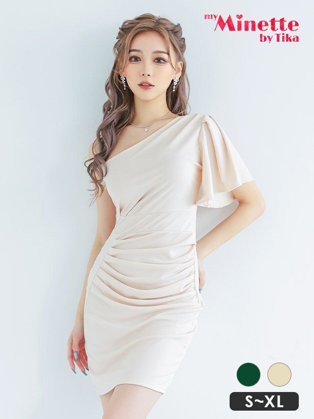 3. [SALE] ミニドレス プチプラ 新人 タイト ラウンジ ワンショル 半袖 低身長 胸元隠し 同伴 ウエスト 緑 キャバドレス (せいせい着用/S~XLサイズ対応) | myMinette/マイミネット