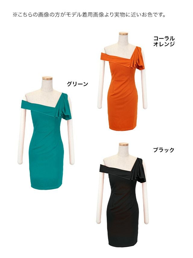 キャバドレス 安い 激安 ミニ丈 キャバクラ クラブ ラウンジ ワンサイドフリル アシメオフショル タイト プチプラ ミニドレス プチプラドレス