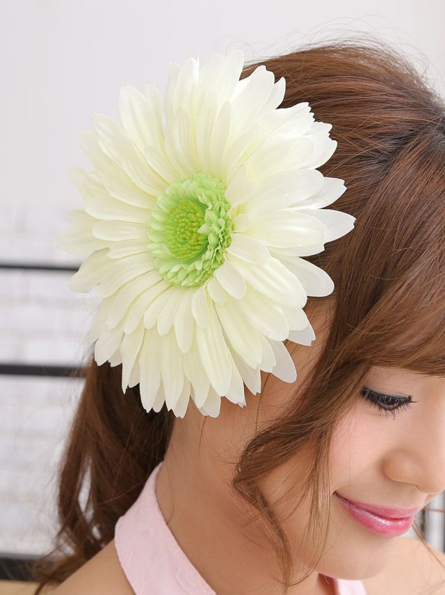 4. ガーベラフラワー髪飾りコサージュ (ホワイト/ピンク/オレンジ)