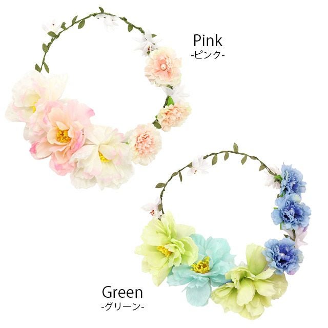 大輪花冠フラワーヘッドアクセサリー (ピンク/グリーン)