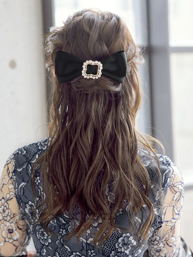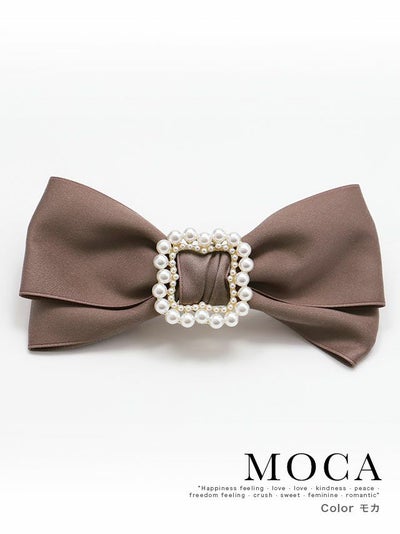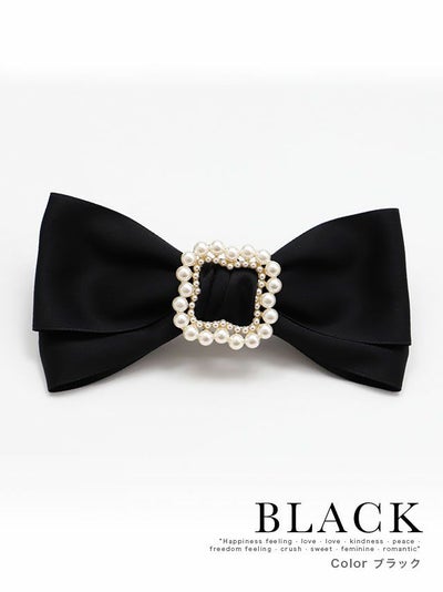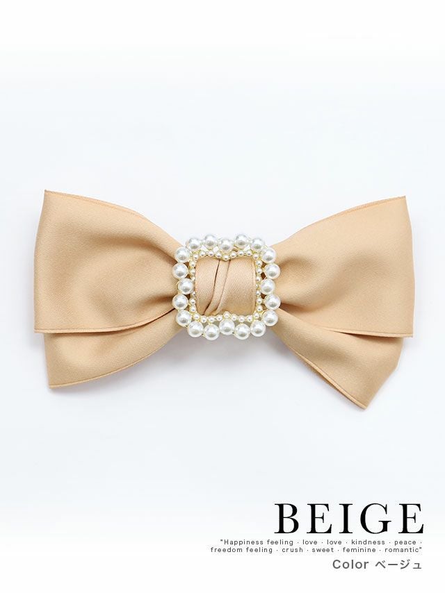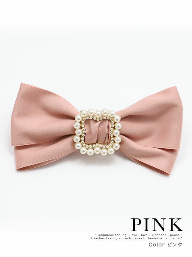パールフレームサテンダブルリボンバレッタヘアアクセサリー