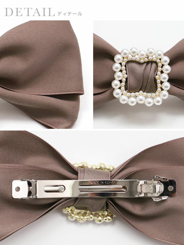 4. パールフレームサテンダブルリボンバレッタヘアアクセサリー