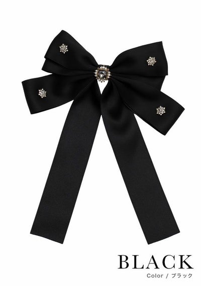 ビジュー付きサテンダブルリボンバレッタヘアアクセサリー